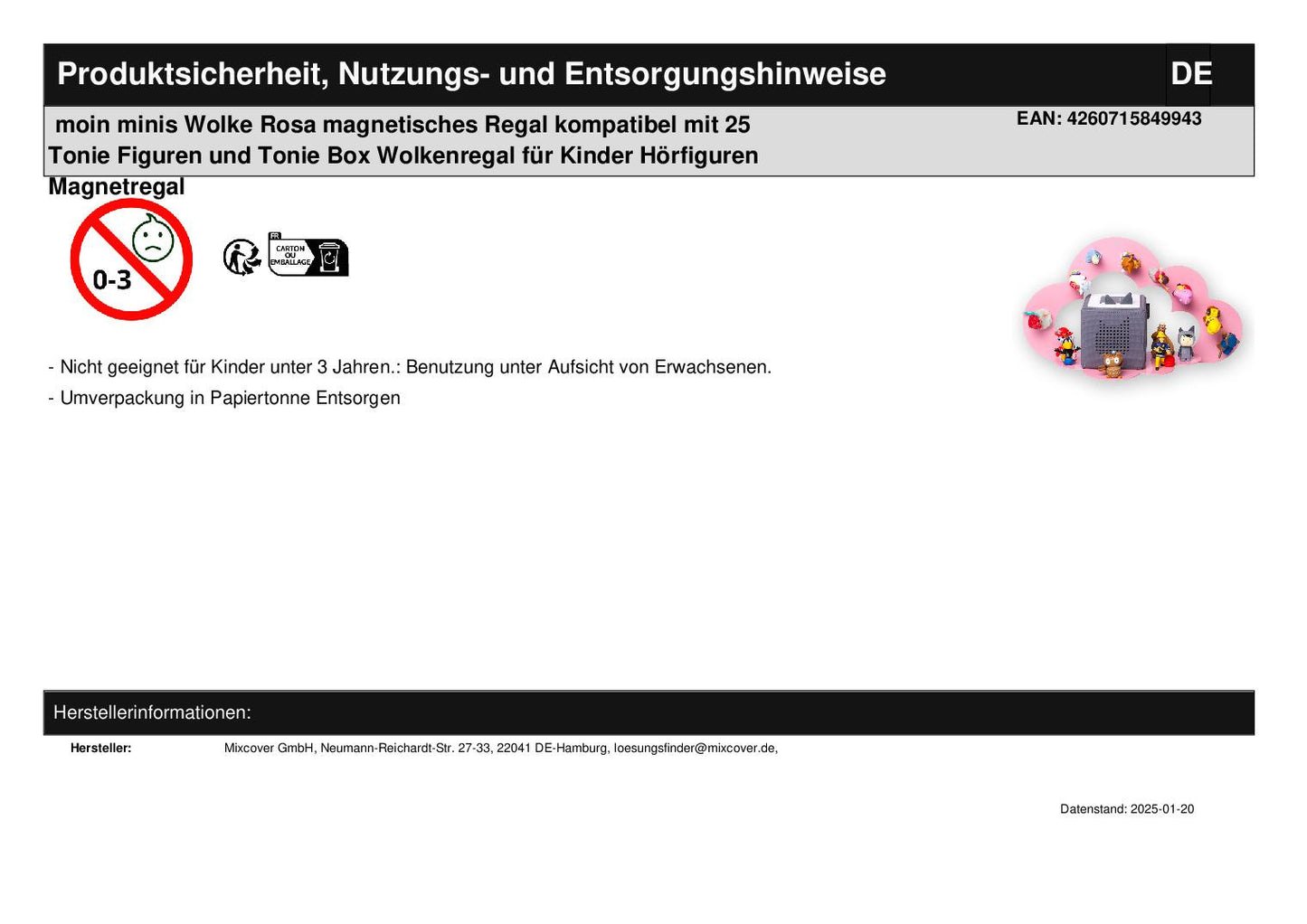 Das moin minis Wandregal steht in keinem Zusammenhang mit der Boxine GmbH. Der Markenname Tonies und ggf. weitere Markennamen werden nur zu Verdeutlichung des Einsatzgebiets unserer Produkte genannt.