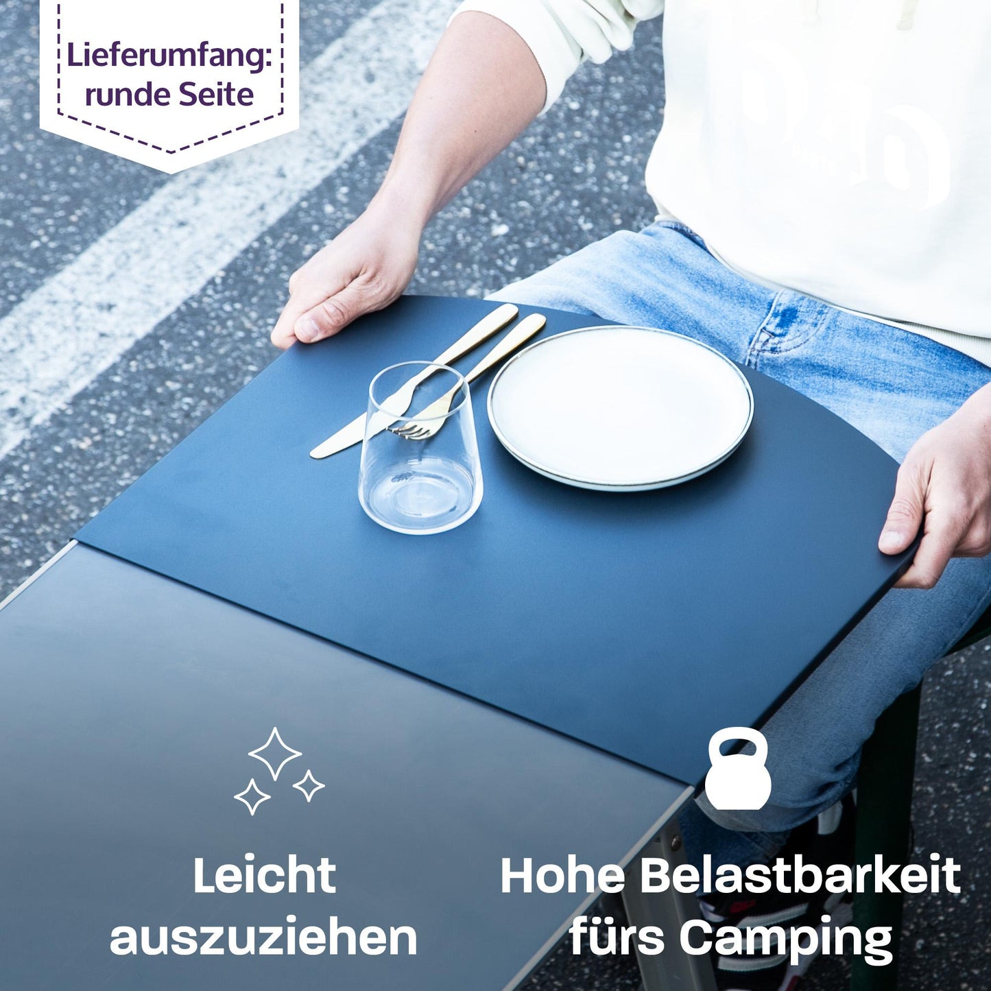 - EINFACHES HANDLING: Ohne Werkzeug einfach auf die runde Tischseite aufschieben und mit dem Expander fixieren.