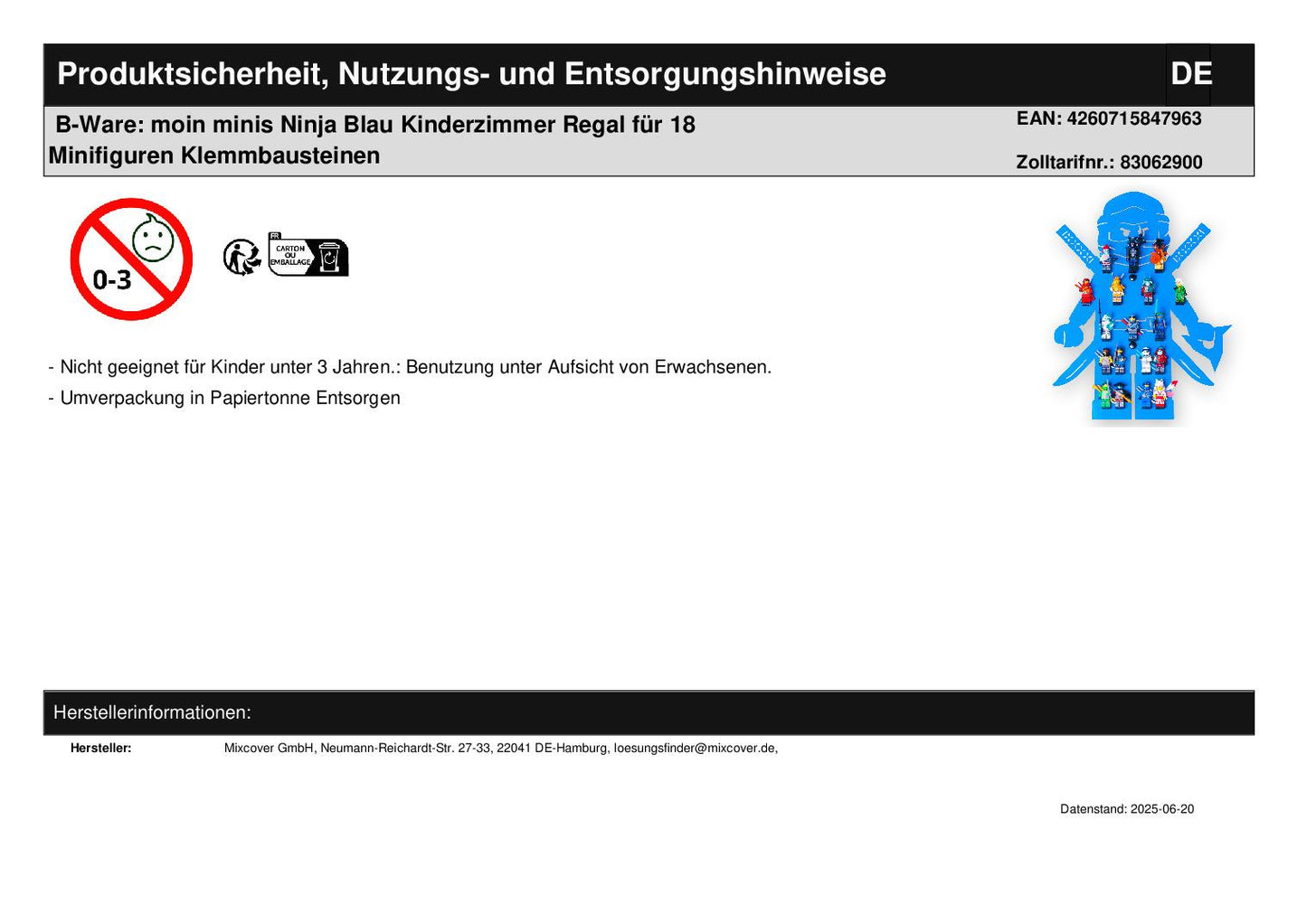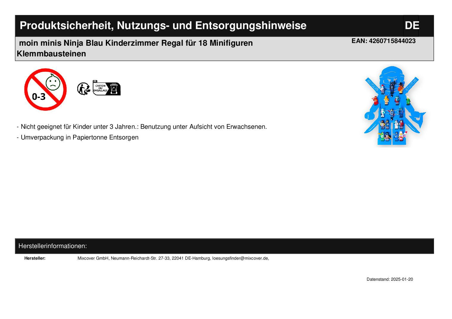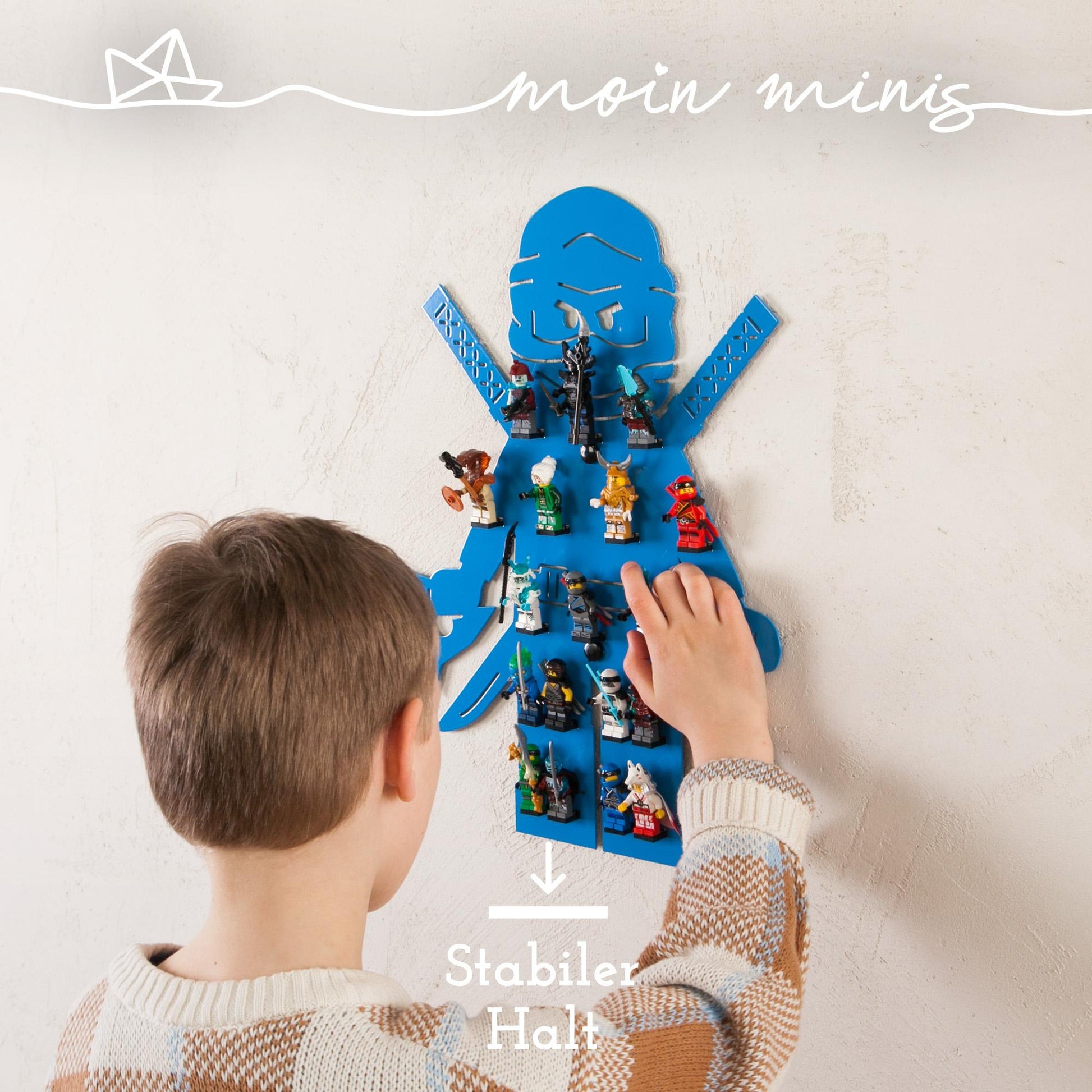 B-Ware: moin minis Ninja Blau Kinderzimmer Regal für 18 Minifiguren Klemmbausteinen