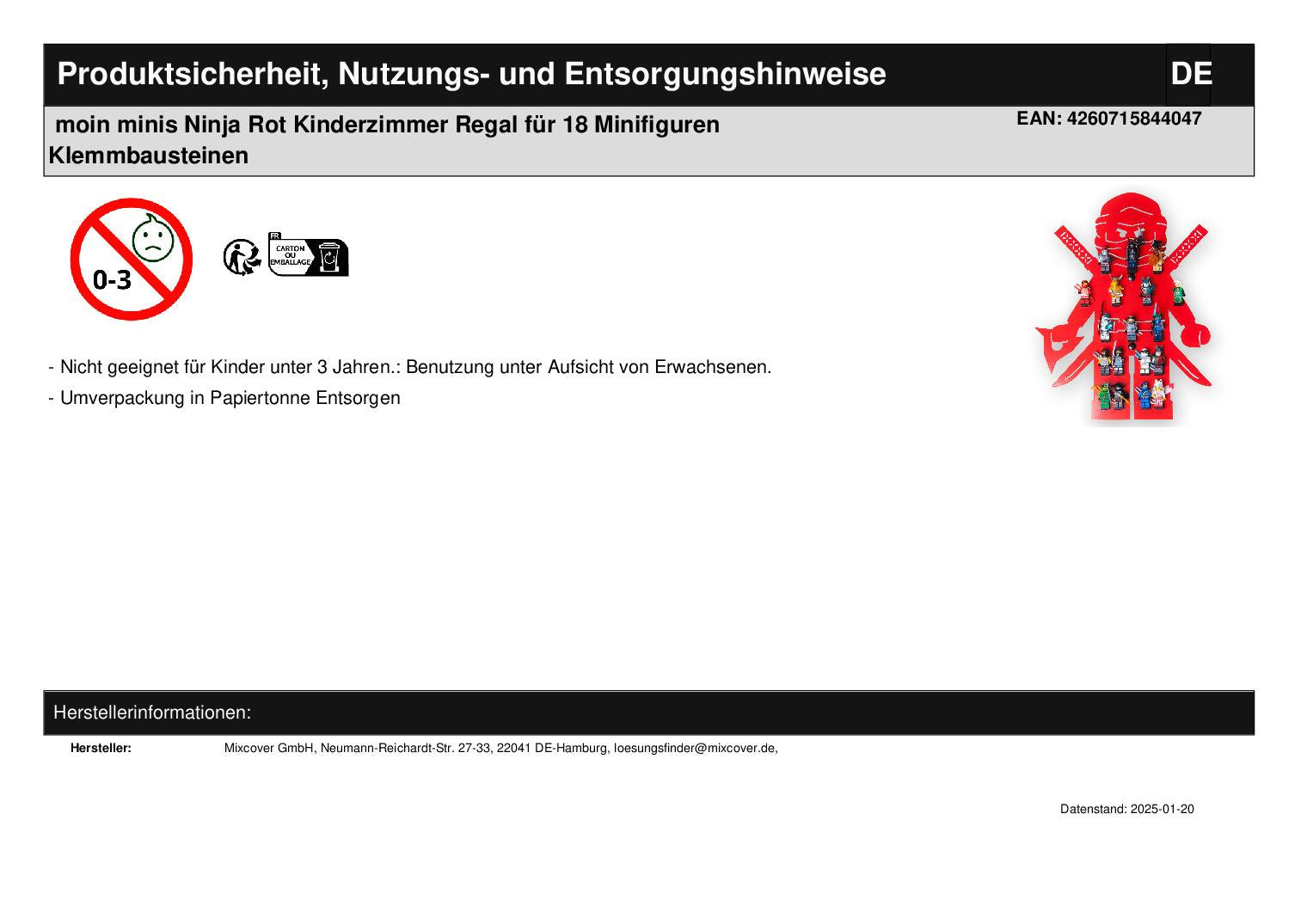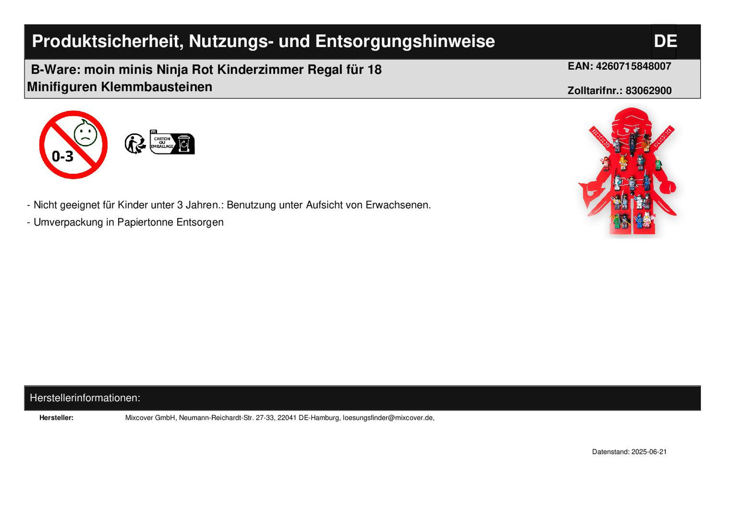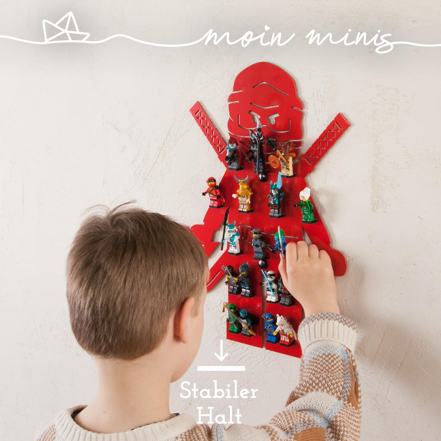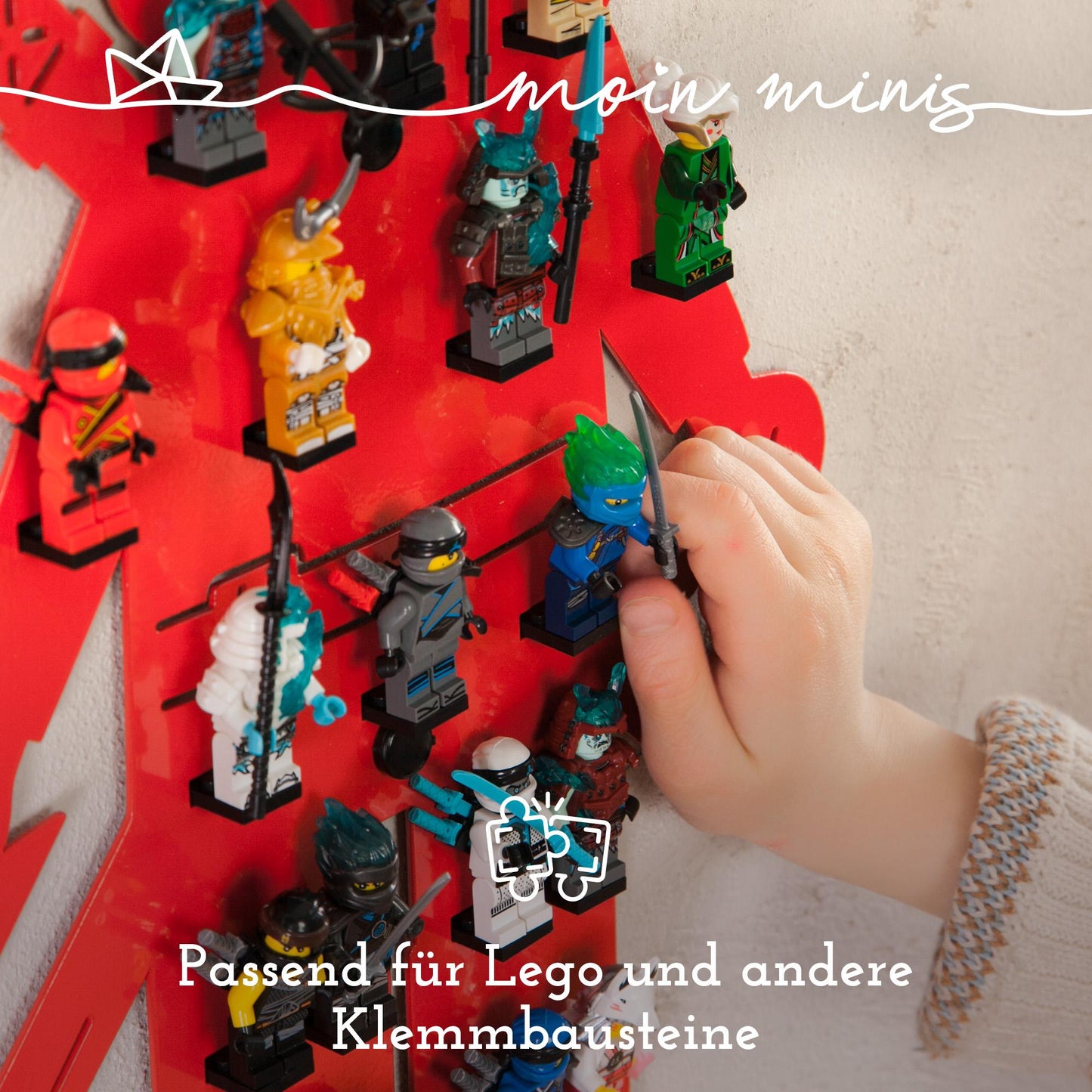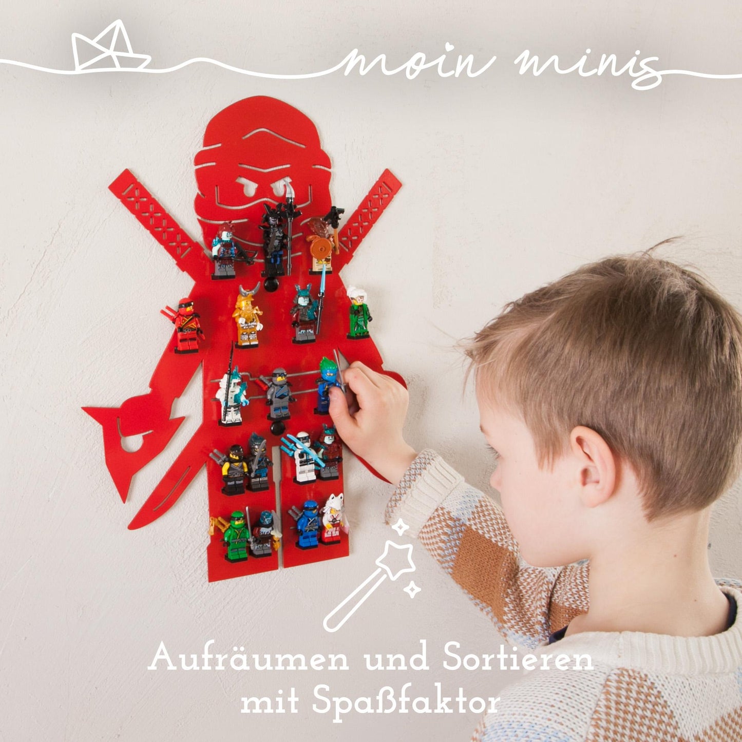 B-Ware: moin minis Ninja Rot Kinderzimmer Regal für 18 Minifiguren Klemmbausteinen