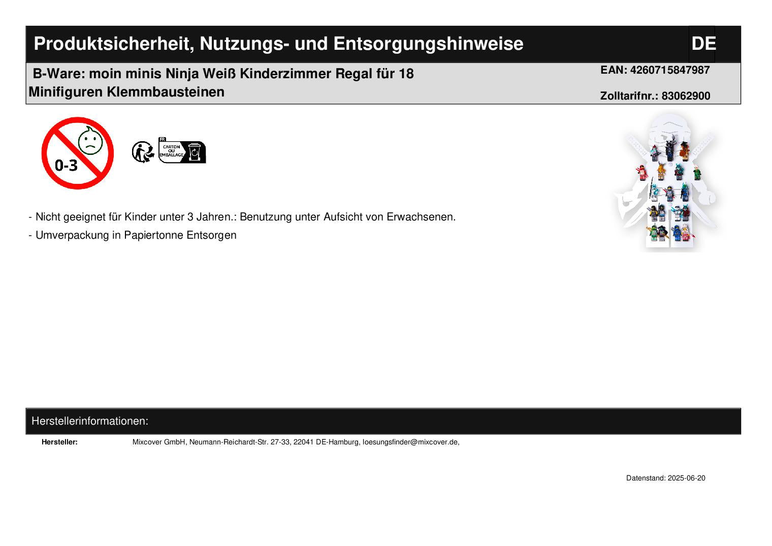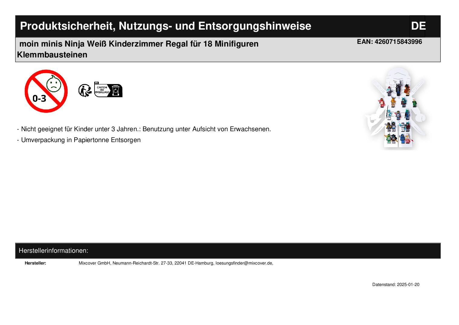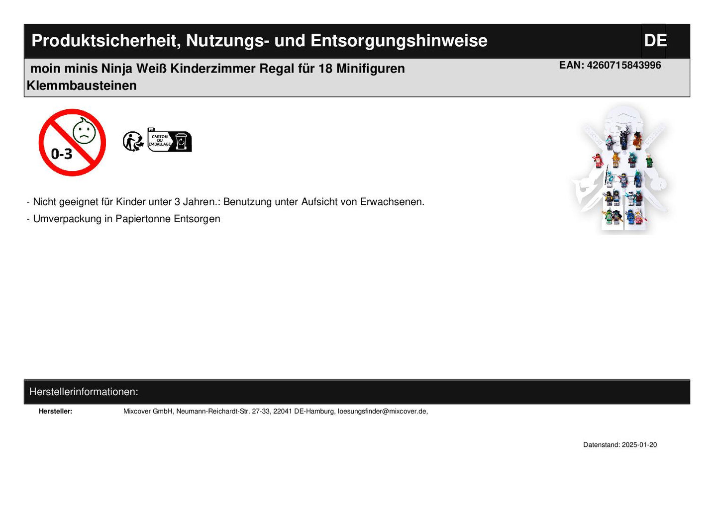 B-Ware: moin minis Ninja Weiß Kinderzimmer Regal für 18 Minifiguren Klemmbausteinen