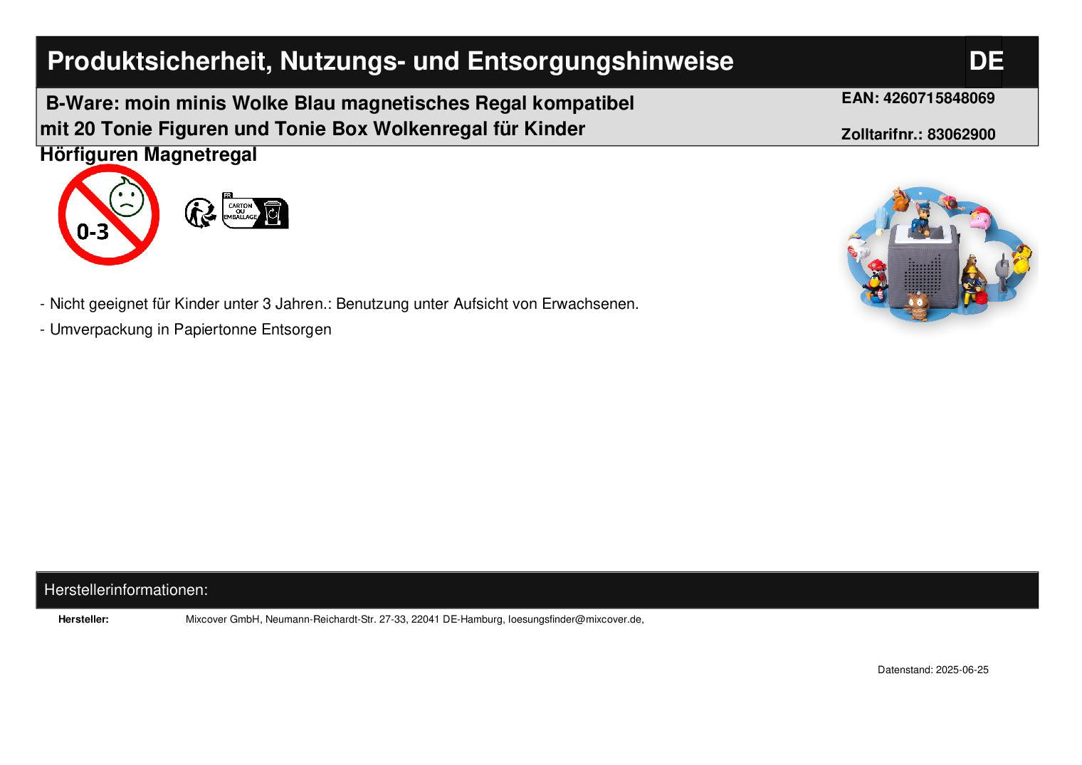 Das moin minis Wandregal steht in keinem Zusammenhang mit der Boxine GmbH. Der Markenname Tonies und ggf. weitere Markennamen werden nur zu Verdeutlichung des Einsatzgebiets unserer Produkte genannt.